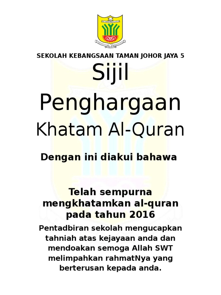 Mengaji Quran Contoh Sijil Khatam Al Quran Program Facebook