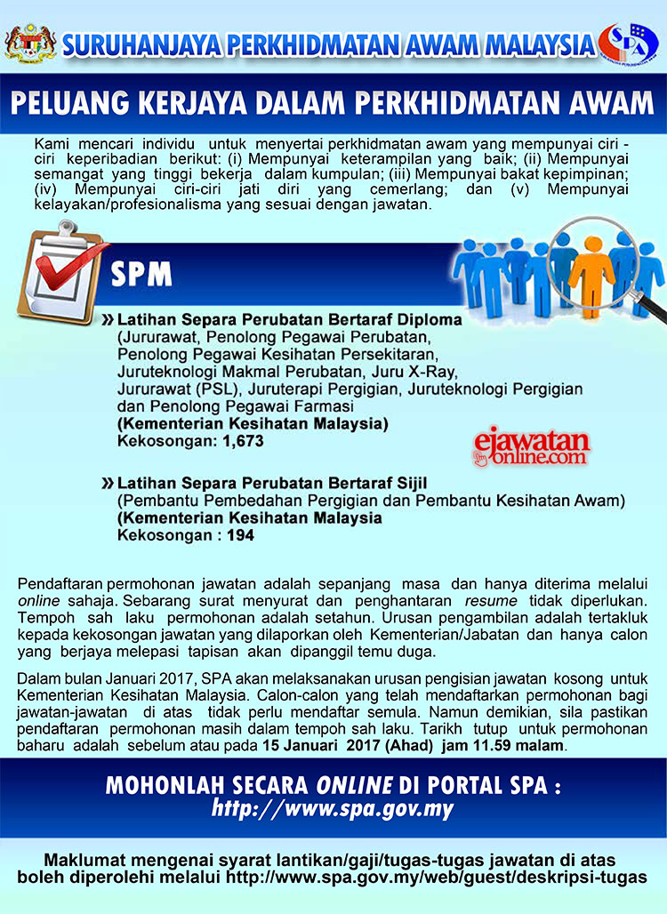 Suruhanjaya Perkhidmatan Awam Spa Malaysia 1867 Kekosongan 15 Januari 2017 Jawatan Kosong 2020