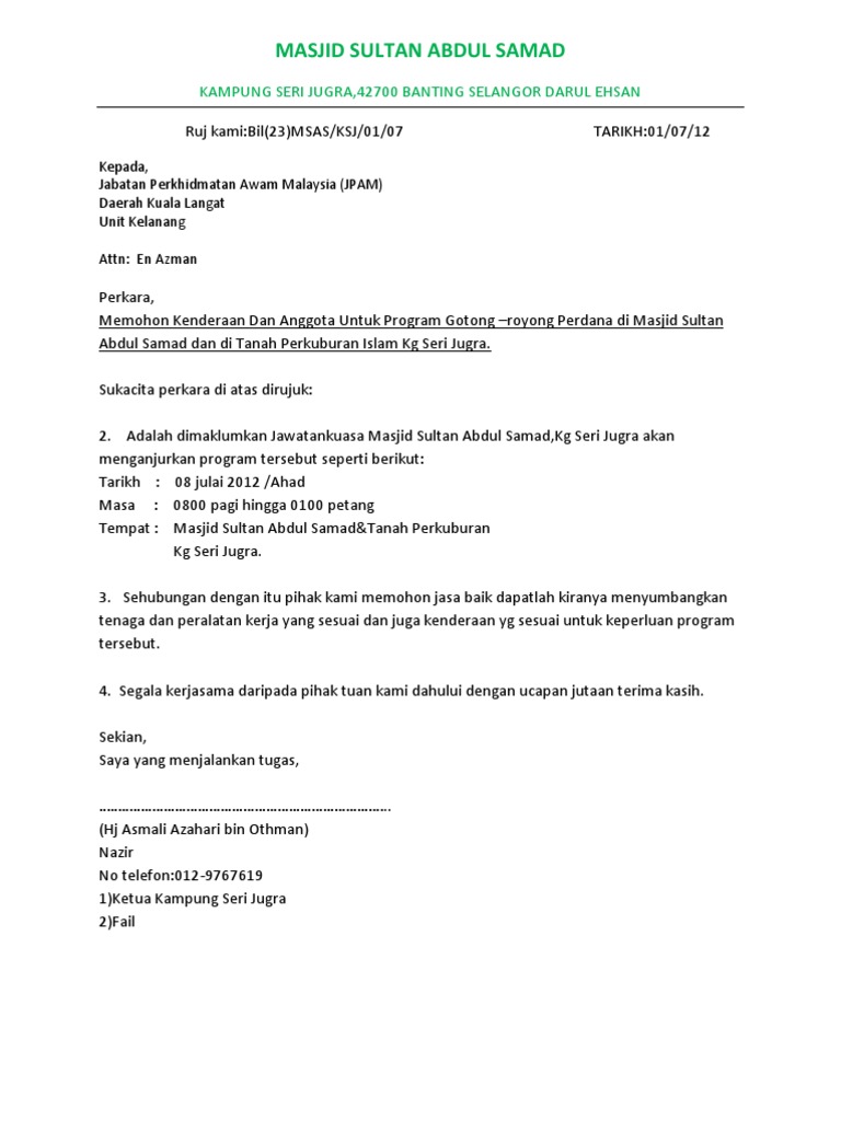 Contoh Surat Rasmi Gotong Royong Vrasmi