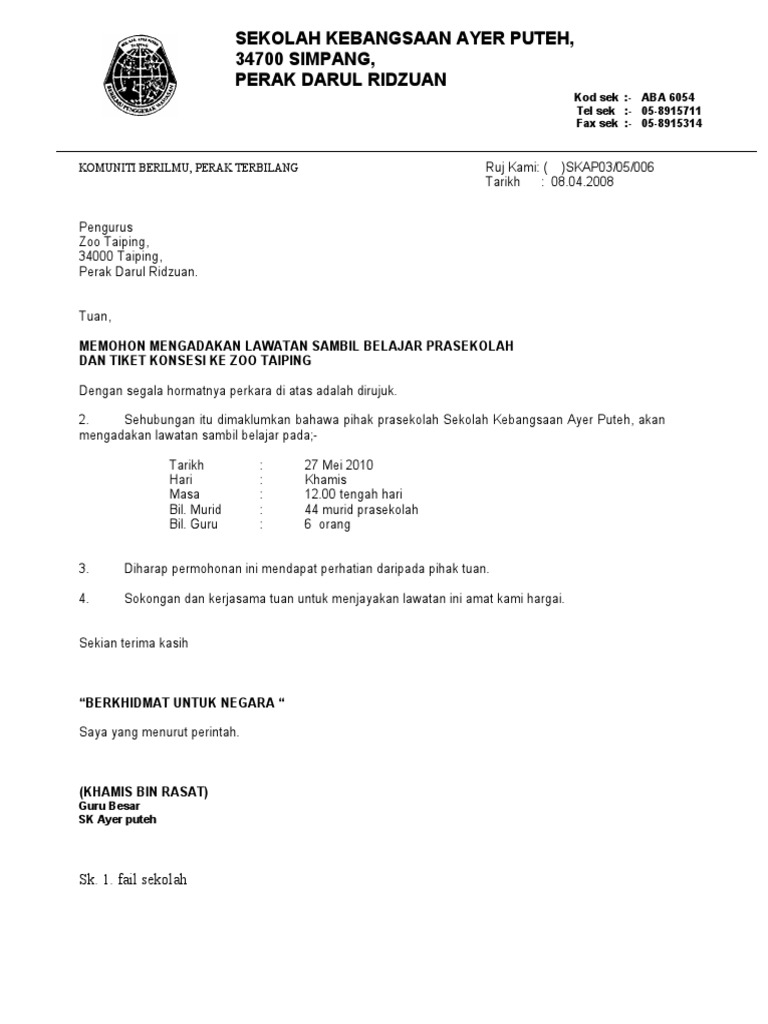 Contoh Surat Rasmi Lawatan Ke Zoo Surasmi G
