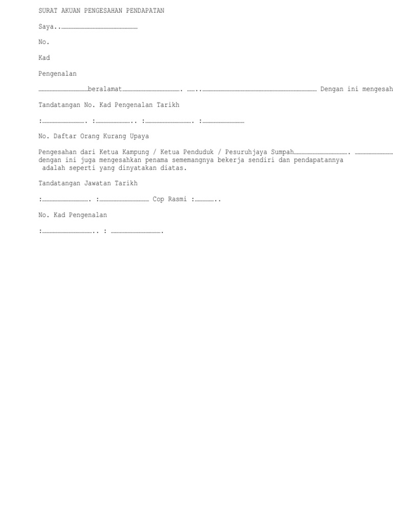Akuan Pengesahan Pendapatan Doc Document